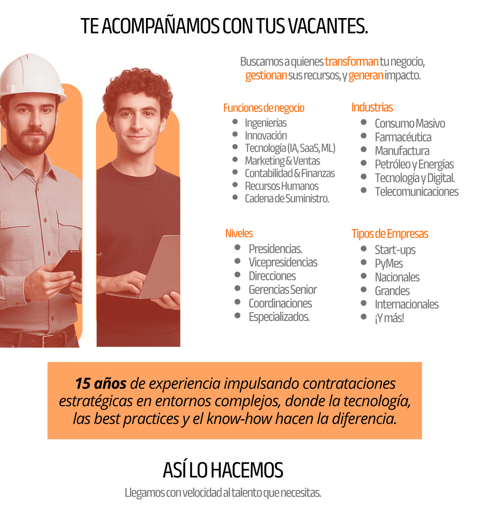 Buscamos talento con rapidez, precisión, confidencialidad y visión de negocio.